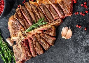 El T-Bone se caracteriza por un hueso en forma de «T» que separa dos piezas de carne distintas: el lomo bajo (entrecot) en un lado y el solomillo en el otro y ofrece una experiencia de «dos en uno»: la firmeza y sabor del lomo junto a la suavidad extrema del solomillo.